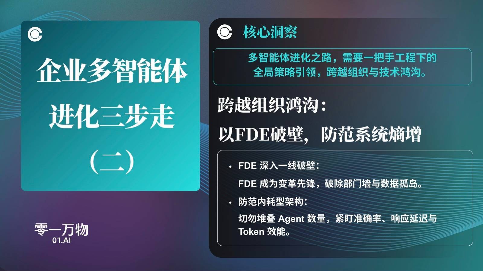 第二步,引入FDE模式跨越组织鸿沟。 针对转型中常见的部门墙与数据孤岛,企业需借助前置工程师(FDE)深入一线“破壁”。这一阶段的关键在于防范系统性熵增,拒绝盲目堆叠智能体数量,而是通过精细化管理,紧盯准确率、响应延迟与Token效能,避免陷入“内耗型架构”。